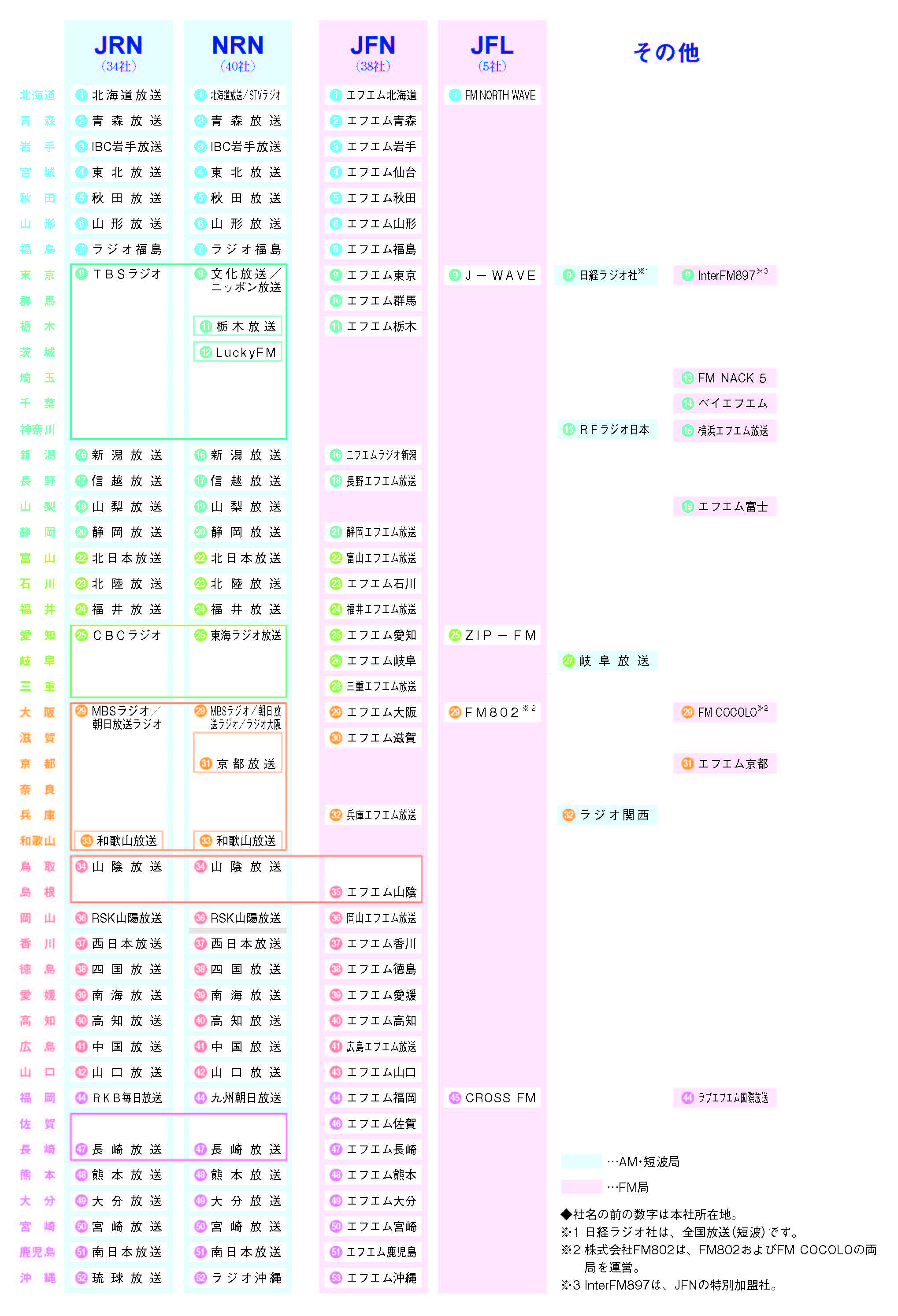 民放ラジオ開局一覧